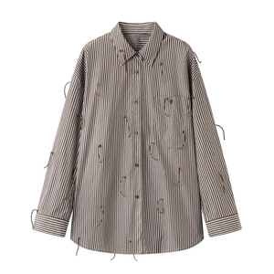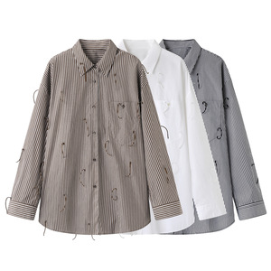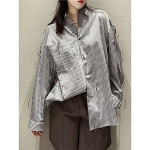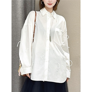 现货!2025秋季新款短绳设计款长袖衬衫女宽松大码显瘦气质上衣女