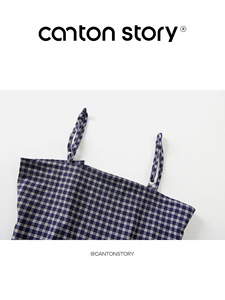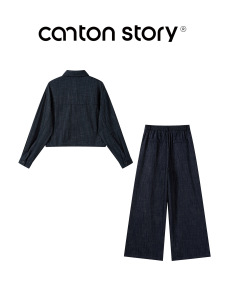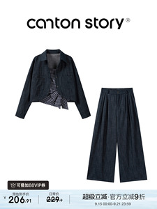 羊城故事 格子牛仔吊带外套套装女2025新款秋季慵懒休闲裤三件套