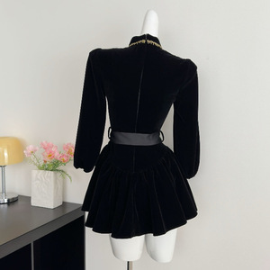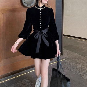 2025秋季新款 伯拉德千金 新品赫本风黑色丝绒长袖连衣裙秋季短裙