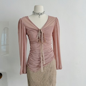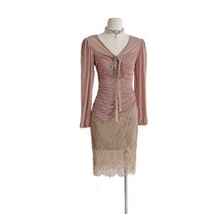 女人味绑带褶皱长袖上衣/蕾丝半身裙套装两件套2025秋季新款