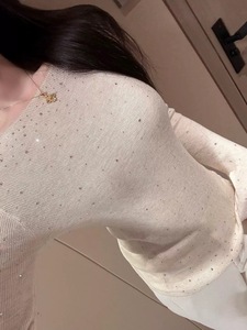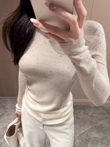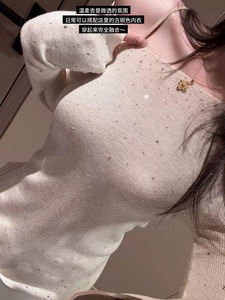 漂亮重工闪钻针织打底衫女内搭早秋穿搭初秋韩系chic别致长袖上衣