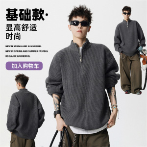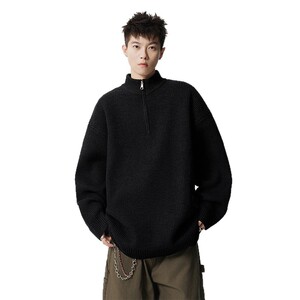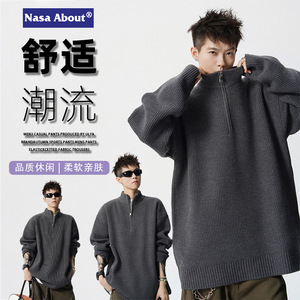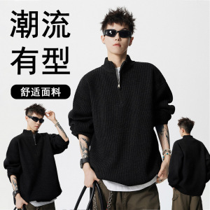 NASA黑色半拉链立领毛衣男秋冬2025新款美式高街慵懒风针织衫上衣