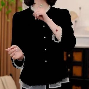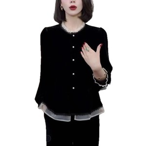 一件代发网红爆款法式丝绒假两件衬衫2025秋季新款时尚设计感上衣