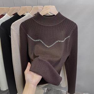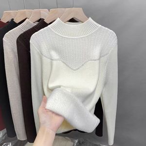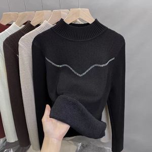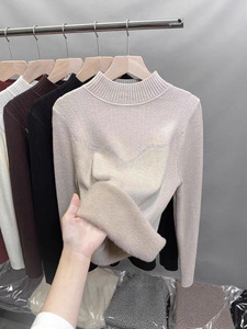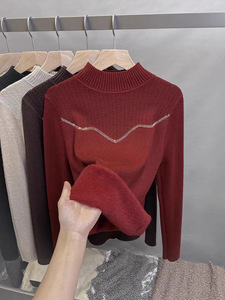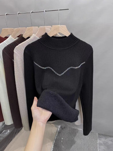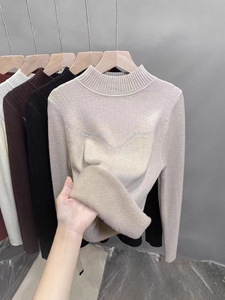 秋冬季加绒加厚毛衣女一体绒圆领内搭打底针织衫修身大码保暖上衣