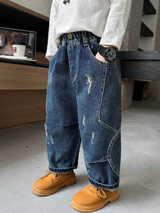 8906儿童秋季牛仔裤破洞男童韩版长裤2025新款直筒裤子宝宝休闲裤
