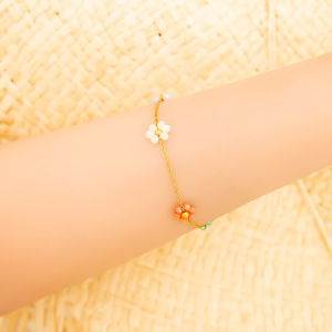跨境不锈钢手链彩色小花青春时尚甜美风镀18K金女式保色手饰