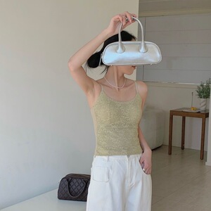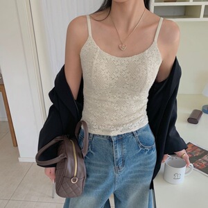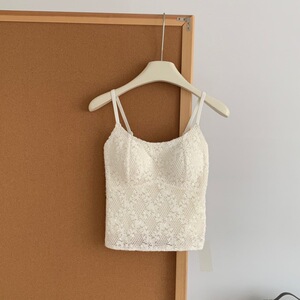 原版早秋纯欲风羽绒蕾丝吊带辣妹背心女固定胸垫显瘦内搭外穿背心