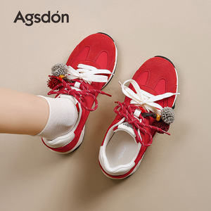 奥古狮登红色德训鞋女2025新款秋冬厚底巨好看复古芭蕾阿甘运动鞋