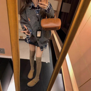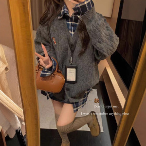 可补T8126学院风刺绣小熊毛衣开衫长70-仅供货经销商不退换