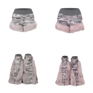 Fudge Pink 25秋季New美式复古辣妹迷彩个性毛毛设计含腿套短裤