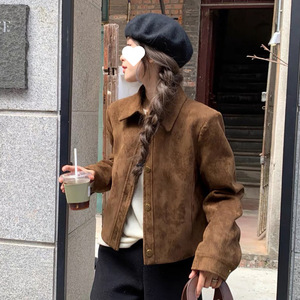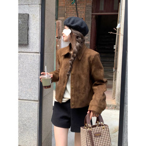 【4419人收藏】鹿皮绒外套女春秋新款宽松美拉德复古休闲机车短款