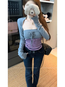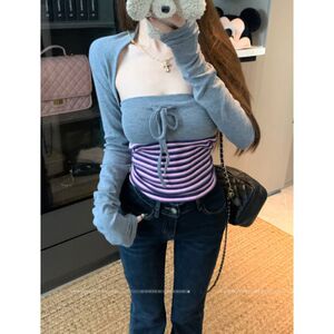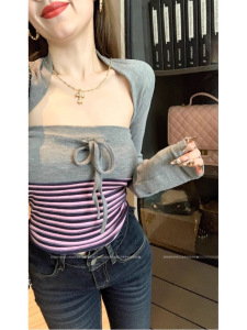 【工厂现货】韩系套装女秋季长袖开衫上衣显瘦无袖抹胸上衣两件套