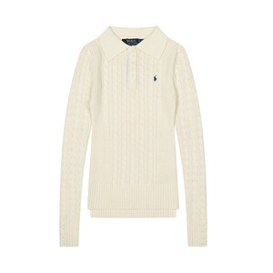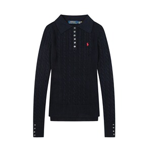 拉夫劳伦 Ralph Lauren 翻领麻花纯色基础小马刺绣logo女神款毛衣