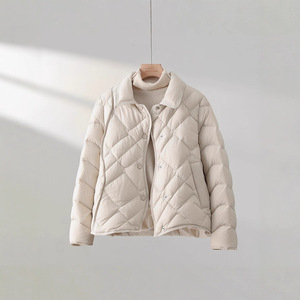 90白鸭绒轻薄羽绒服女短款2025秋冬新款翻领小香风洋气小个子外套