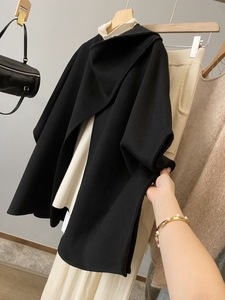 泽黛佳伊轻奢线!70羊毛30莱赛尔法式高级解构双面呢斗篷围巾大衣