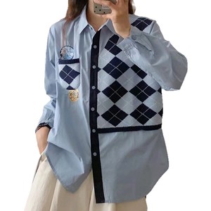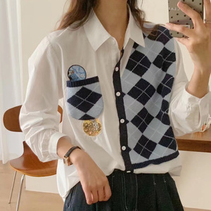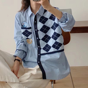 设计感法式小众春秋季新款假两件卡通拼接宽松休闲棉质刺绣显瘦上