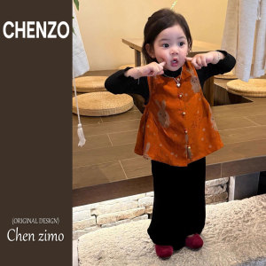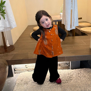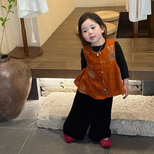 新中式儿童汉服套装秋季女童小众高质感提花马甲小女孩周岁宴礼服