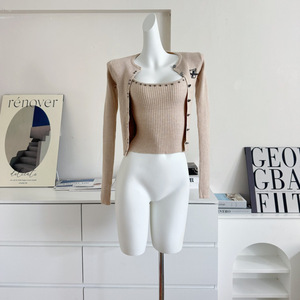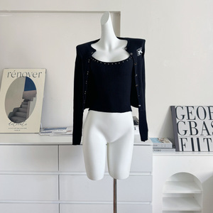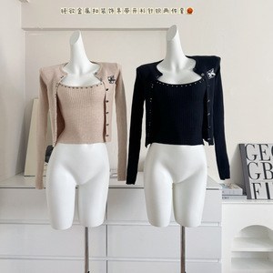 塞纳2025秋季新款波点蝴蝶结刺绣复古撞钉吊带开衫上衣两件套