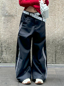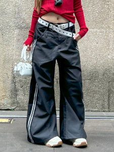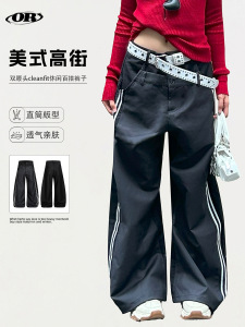 OREETA丨美式复古双腰头弯刀西裤男女款高级设计感宽松阔腿休闲裤