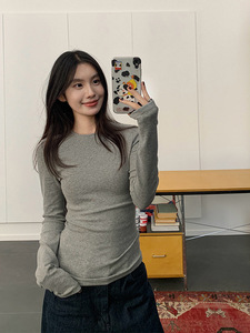 辣妹正肩上衣2025秋冬新款纯色掐腰显身材百搭长袖T恤女装打底衫