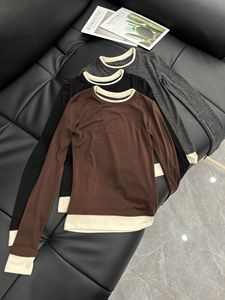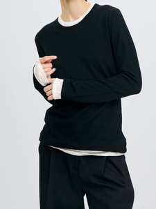 【现货】假两件圆领打底衫女修身内搭长袖T恤百搭撞色套头针织衫