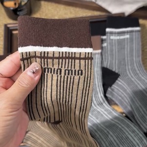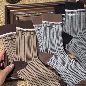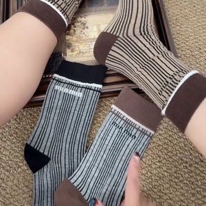 网红欧货潮流袜子秋冬款ins复古美拉德竖条纹女袜时尚运动风长袜