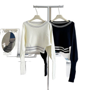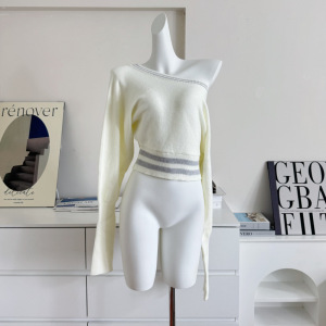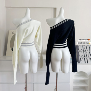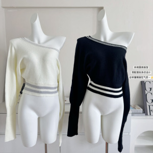 塞纳2025秋季新款软糯一字肩毛衣宽松慵懒短款套头针织衫