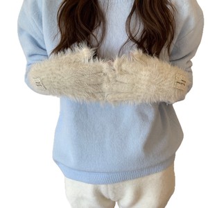 个性银丝长毛针织手套女冬季y2k甜酷辣妹百搭保暖露指可触屏手套