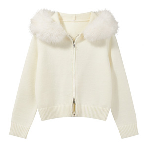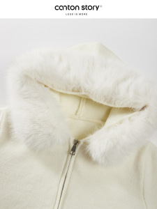 羊城故事 高级感毛领连帽开衫毛衣女2025秋季气质慵懒开衫上衣