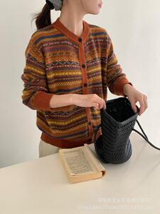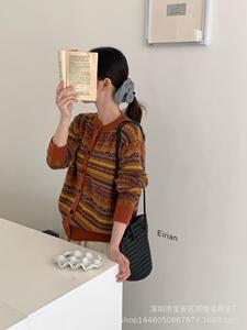 琪镌绘制重工毛衣外套女2025年秋冬新款圆领洋气别致针织开衫6638