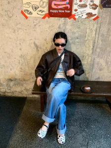 2025春秋新款美式复古黑色pu皮衣外套女高级感夹克小个子爆款上衣