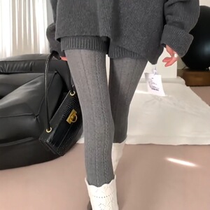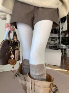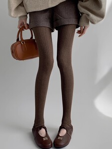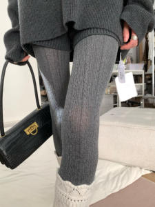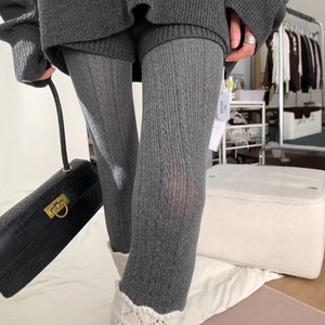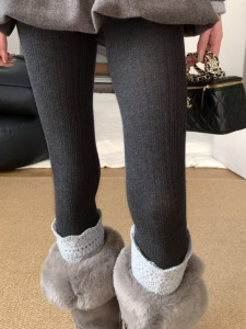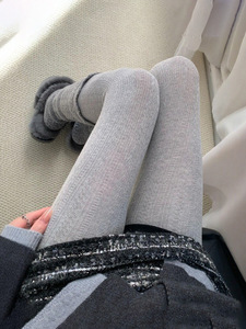 春秋季薄款棉质立体麻花竖纹踩脚连裤袜显瘦灰色百搭外穿打底裤袜