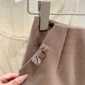 塞纳2025秋季新款口袋蝴蝶结半身裙短裙+米白色上衣套装