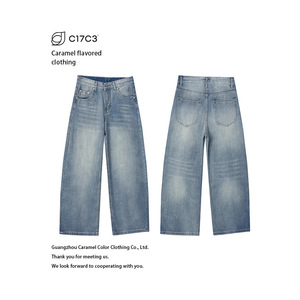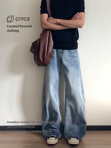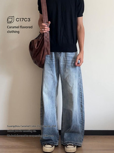 Caramel中性丨浅蓝色弯刀牛仔裤复古阔腿长裤cleanfit直筒拖地裤