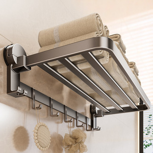 吸盘毛巾架浴室卫生间置物架免打孔折叠浴巾架厕所洗手间一体挂架