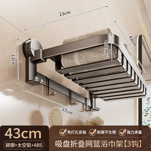 【吸盘】枪灰-43cm单层网篮浴巾架
