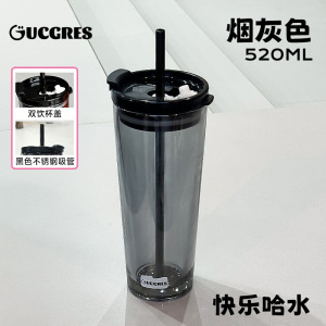 烟灰色+盖子+黑色不锈钢吸管+硅胶套+玫红色提绳