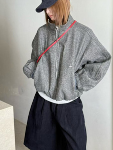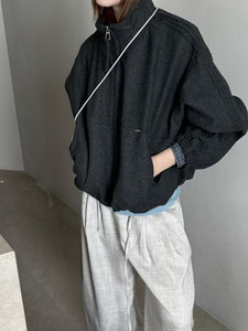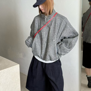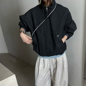 时尚格子拼接立领羊毛呢外套女欧货2025秋季新款宽松休闲百搭外衣
