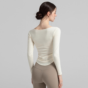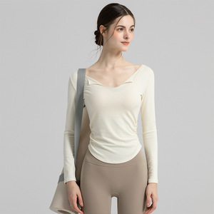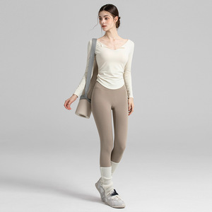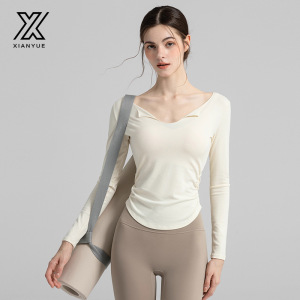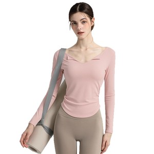 瑜伽服女2025新款V领长袖运动T恤修身显瘦收腰普拉提健身服上衣女