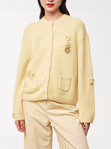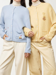 【甜品针织系列】鄂**斯女装品羊毛钉珠女针织开衫2025秋冬新款