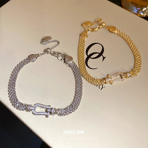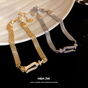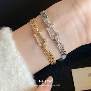 镶钻马蹄扣椭圆几何吊坠手链复古vintage气质手环轻奢高级感手饰