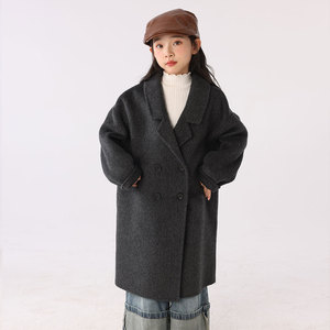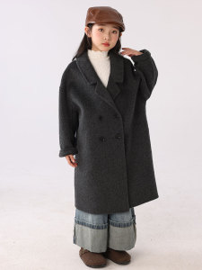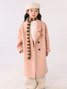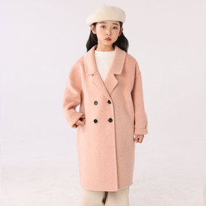 儿童双面羊绒大衣中长款西装领加厚外套秋冬女童装全羊毛呢双排扣