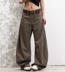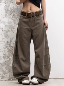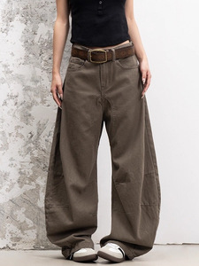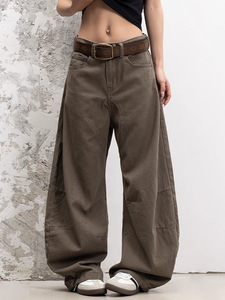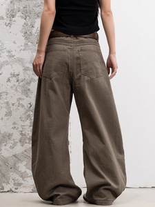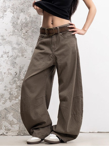 【韩牛】美式复古弯刀裤高腰垂感咖色宽松休闲百搭阔腿牛仔裤女