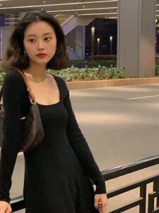 【现货】小众不撞款裙子巨好看的早秋法式小资气质长袖黑色连衣裙