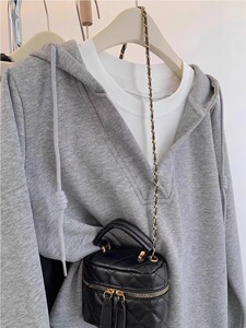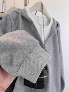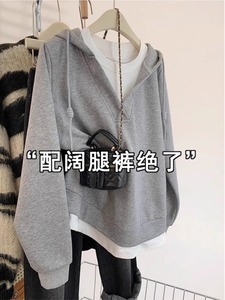 十三行爆款!假两件灰色连帽卫衣女2025早秋新款百搭小个子上衣