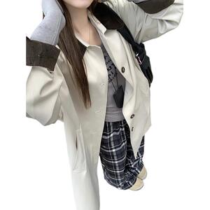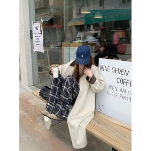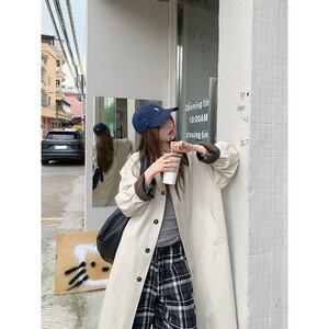 韩系气质高级感撞色翻领风衣外套女春秋2025新款过膝长款休闲大衣