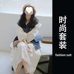 春季穿搭一整套装女2025港式复古牛仔开衫马甲连衣裙轻熟风两件套