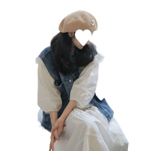 蓝色马甲+连衣裙两件套