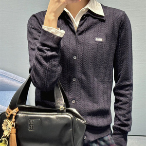 25秋季新款南油高定Miu简约休闲百搭单排扣字母logo针织开衫