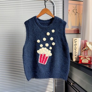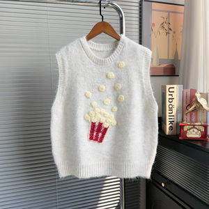 爆米花绣花圆领软糯叠穿针织马甲背心女2025秋季坎肩百搭毛衣马夹